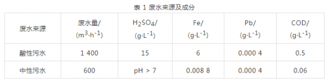 钛白粉生产过程中排出的工业废水主要分酸性废水及中性废水,其成分及水量详见表 1.