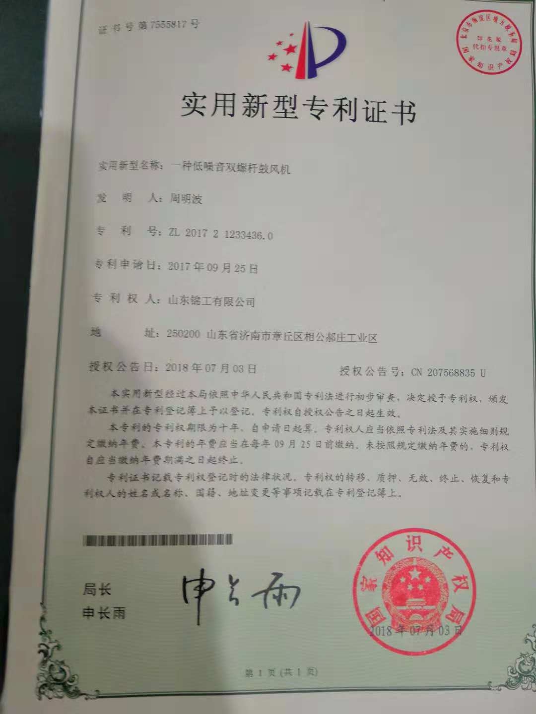 日前,28多多风机的“一种双螺杆鼓风机” 、“一种紧凑型罗茨鼓风机” 、 “罗茨风机选型软件” 等获国家知识产权局颁发的专利及软著证书。
