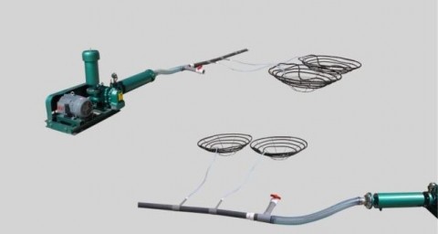 2、关于露天养殖的选型。露天养殖的选型,基本上为大型泥池或者占地面积比较大的池子养殖。这样的养殖方式一般都是采用纳米管曝气或者纳米管接曝气盘(这里的曝气盘是蚊香盘式的纳米管曝气盘)。这类养殖的罗茨风机的选择,需要根据占地面积及使用的纳米管的长度或者曝气盘的数量来确定罗茨风机的风量。
